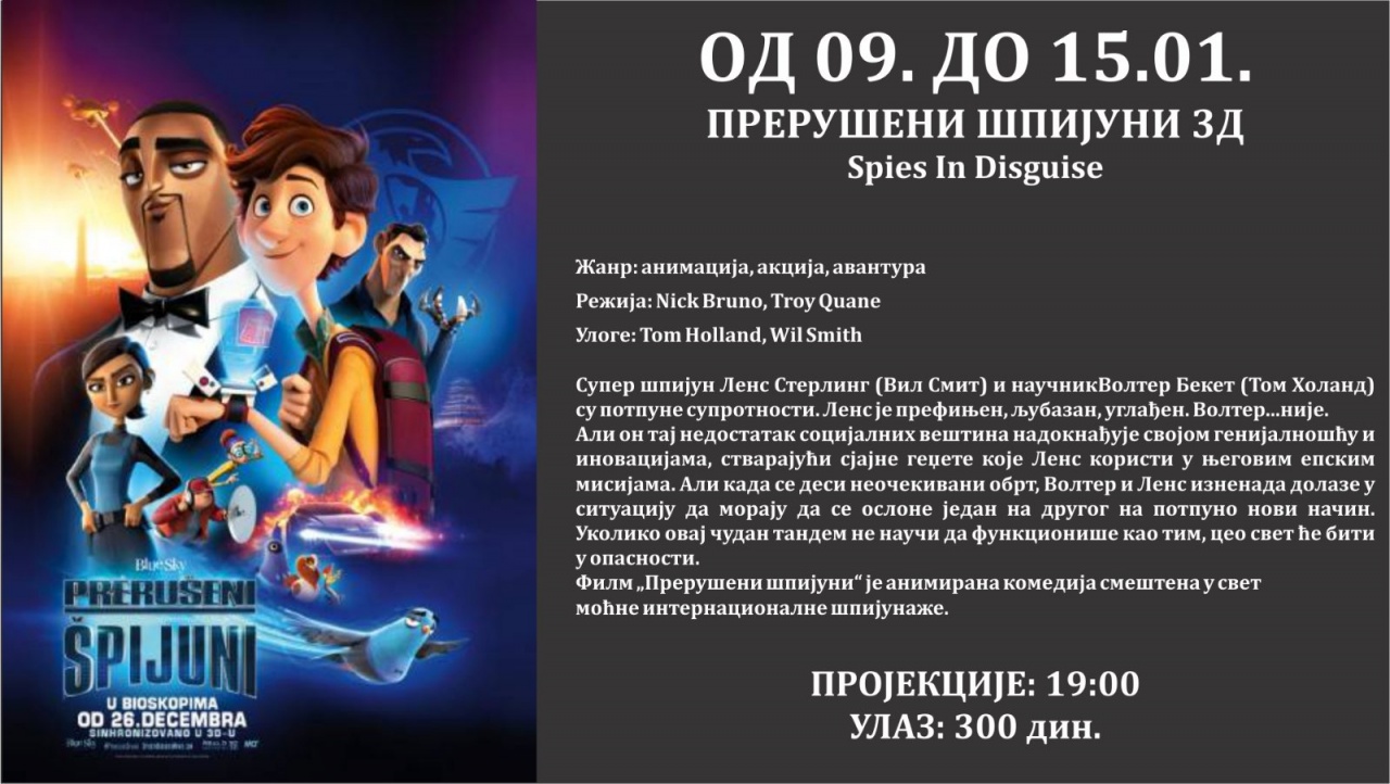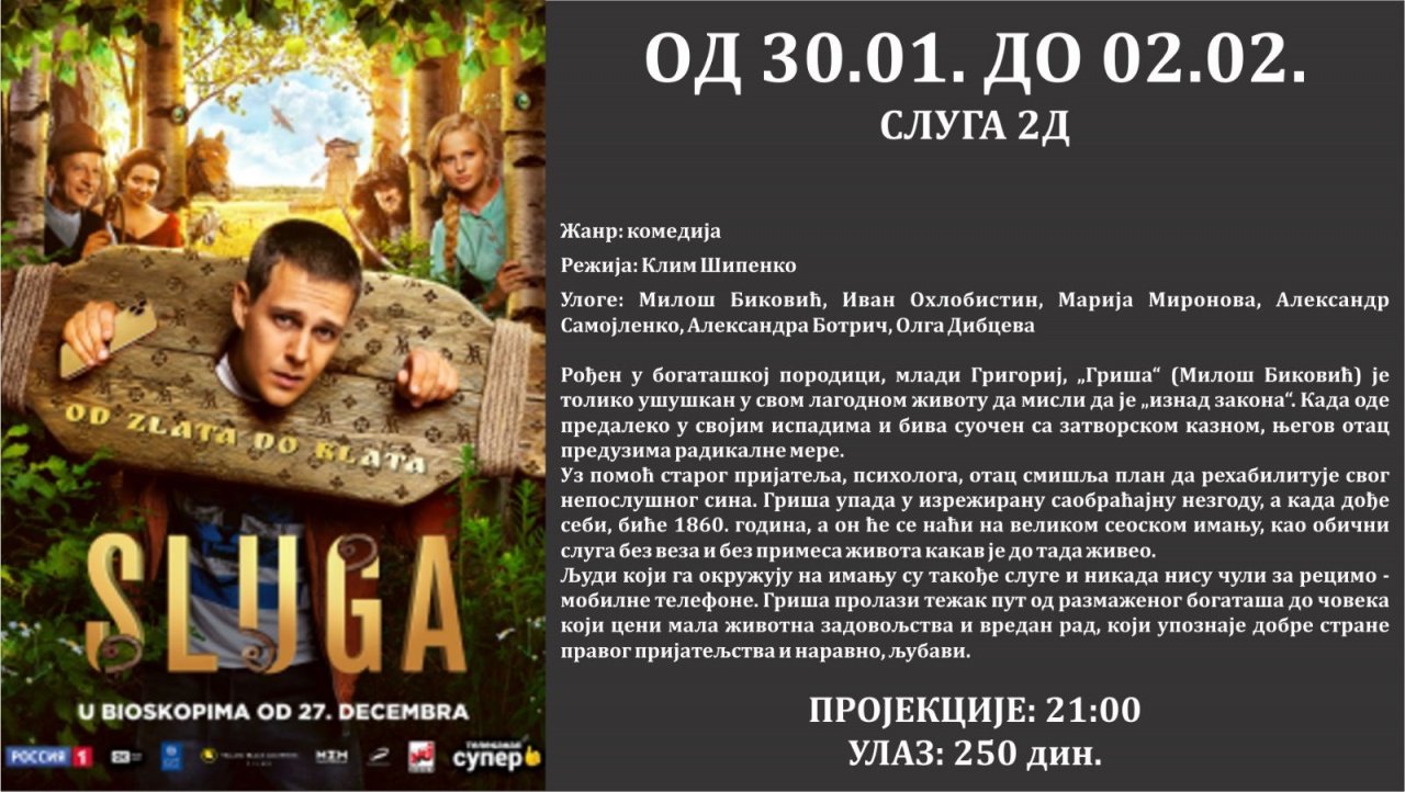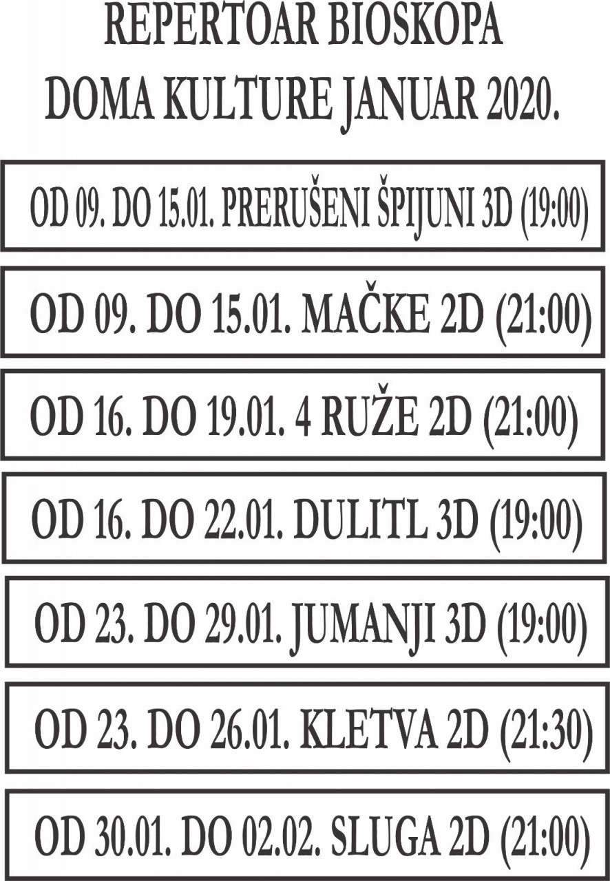 Repertoar Bioskopa Doma kulture do kraja januara