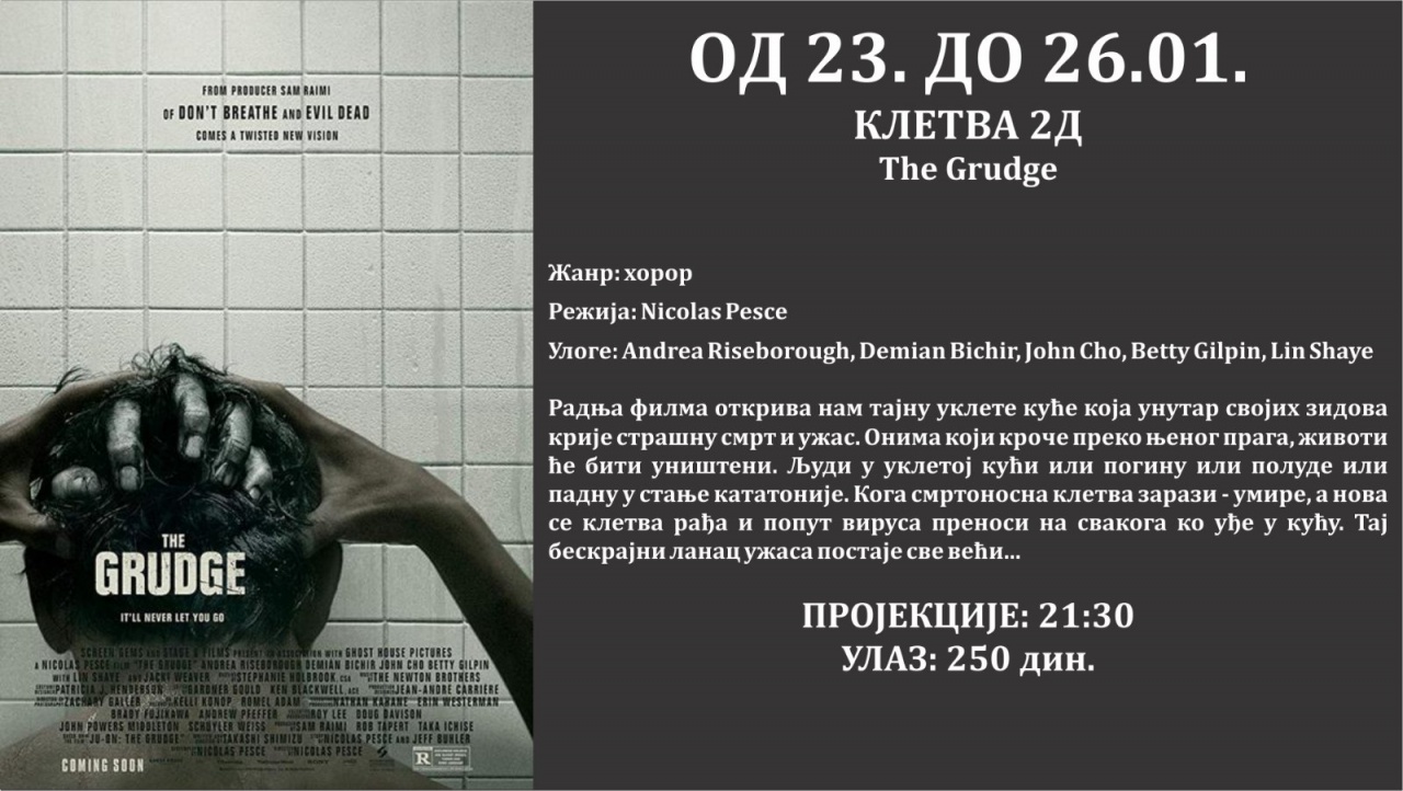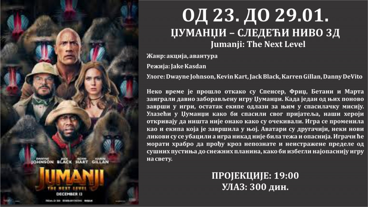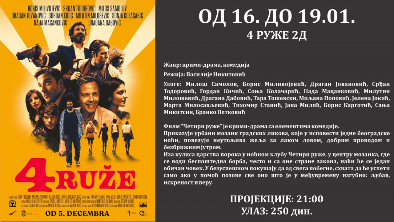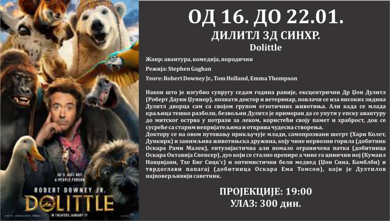 Repertoar Bioskopa Doma kulture do kraja januara