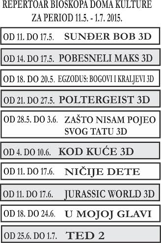 Repertoar bioskopa Doma kulture od 11.05. do 01.07.