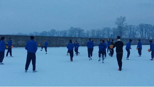 Vremenski uslovi ne odgovaraju za trening s obzirom da na terenima ima oko 20 cm.snega. Povremeno radi se i u teretani.