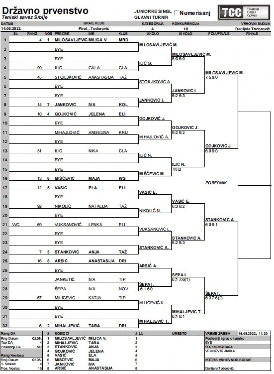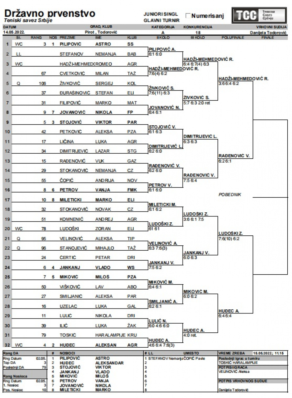 U Pirotu je u toku Državno prvenstvo za juniorke i juniore u tenisu. Turnir organizuje Teniska akademija Todorović uz podršku Grada Pirota i Sportskog centra.