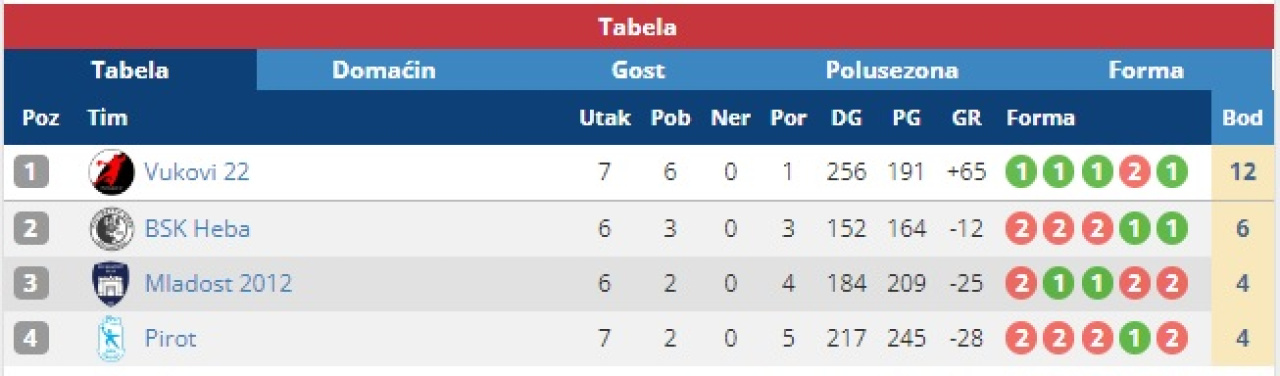 17. apr 2026. 21:12 Prva liga Istok, Grupa B, 13. koloŽRK Pirot - ŽRK Vranje 35:22 (18:10)ŽRK Pirot: Kostić, Rančić 1, Potić 5, Čampa, Filipović 1, Ćirić, Panić 3, Petković 3, P. Dimitrijević, Ristić Nikolić 1, ... -
