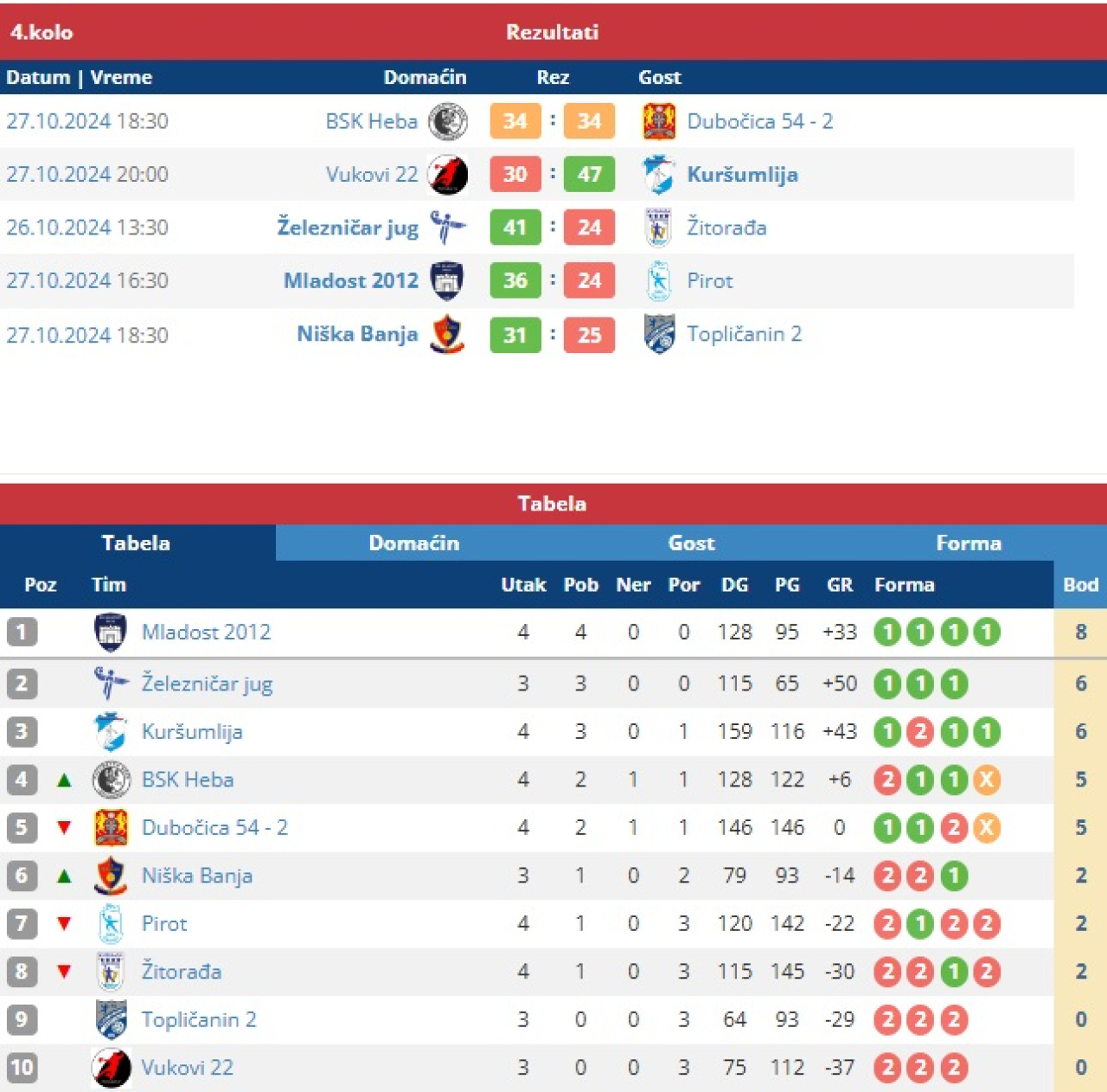 Prva rukometna liga Istok, 4. kolo