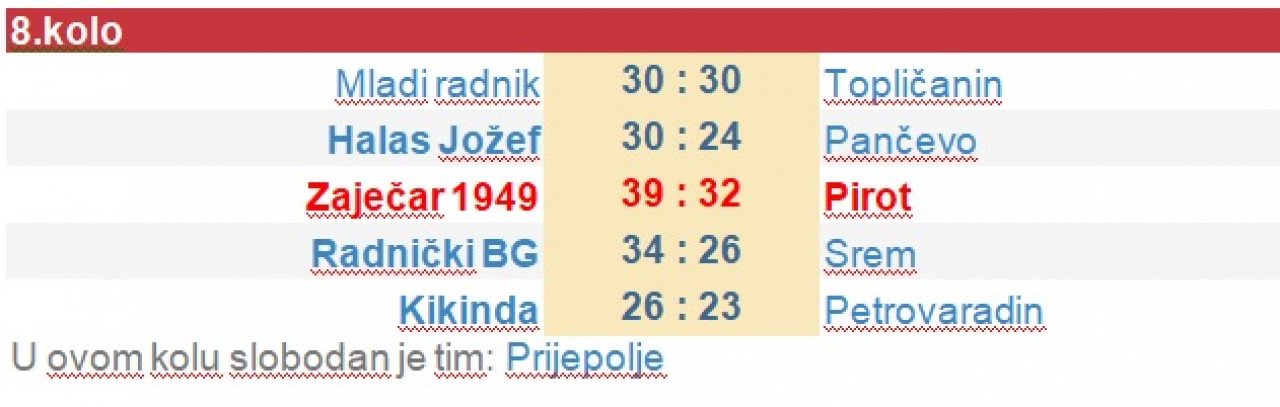 Zaječar : RK Zaječar – ŽRK Pirot 39:32 ( 19:16)