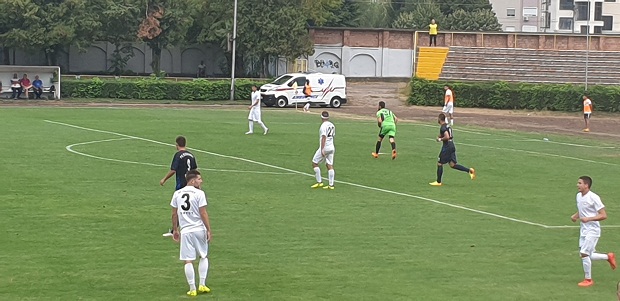 Igrao se deseti minut kada je usledio brzi kontranapad Radničkog. Loptu je spretno primio u šesnaestercu tamnoputi Edoa i oštrim udarcem, u suprotnu stranu gola, doveo domaći tim u vođstvo od jedan prema nula. Gosti su i dalje pokušavali da se koliko toliko organizuju i ugroze gol Radničkog, ali bez uspeha. Ostavili su utisak tehnički doterane ekipe, kondiciono spremne ali bez prave završnice. Radnički je nastavio sa sigurnom igrom tako da je posle jedne izuzetno lepe i tačne kombinacije Ćirkovića i Petrovića, kakve se viđaju na superligaškim terenima, lopta upućena do Pobulića, koji manirom rasnog strelca, rezantnim šutem šalje loptu u desni ugao golmana Tatića, 2:0 za Radnički.