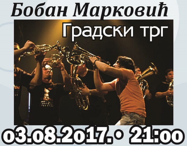 Dom kulture uradio je ,,pravu stvar,,! Naši sugradjani i gosti našeg grada, imaće priliku večeras da uživaju u muzici svetski poznatog i priznatog umetnika na trubi Bobana Markovića i njegovog orkestra. Ovaj bend je svuda u svetu dobijao pohvale, održao mnoge koncerte i svoje izvodjenje pretvorio u pravu umetnost.