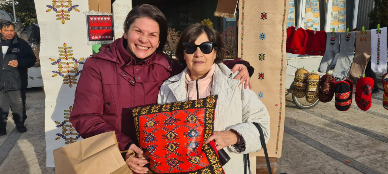 Pojavila se jedna Piroćanka, bila je oduševljena. Jastučić s pirotskim motivima, šare ćilmova.