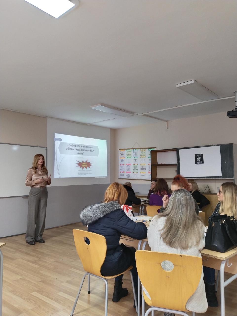 Cilj seminara je bio unapređenje kompetencija nastavnika u oblasti komunikacije sa učenicima primenom alata neuro-lingvističkog programiranja, proširivanje znanja nastavnika o novim načinima komunikacije sa učenicima i roditeljima, prevazilaženje barijera u komunikaciji, uvažavanje različitosti. Ovaj akreditovani seminar je bio od velike koristi nastavnicima Srednje stručne škole, jer je u skladu sa smernicama Ministarstva prosvete i jačanjem vaspitne uloge škole. NLP je poznat komunikacijski model u svetu, koji izučava ličnu motivaciju i uspešnu komunikaciju sa drugima.