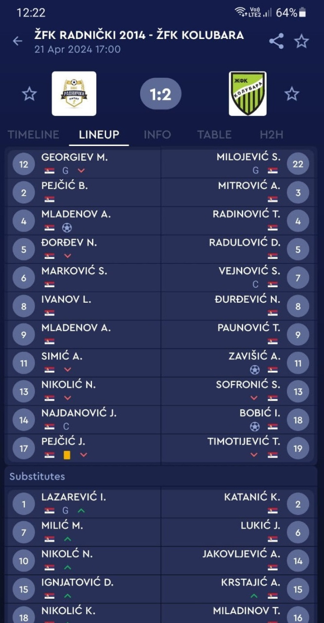 ŽFK Radnički - ŽFK Kolubara 1:2 (1:1)