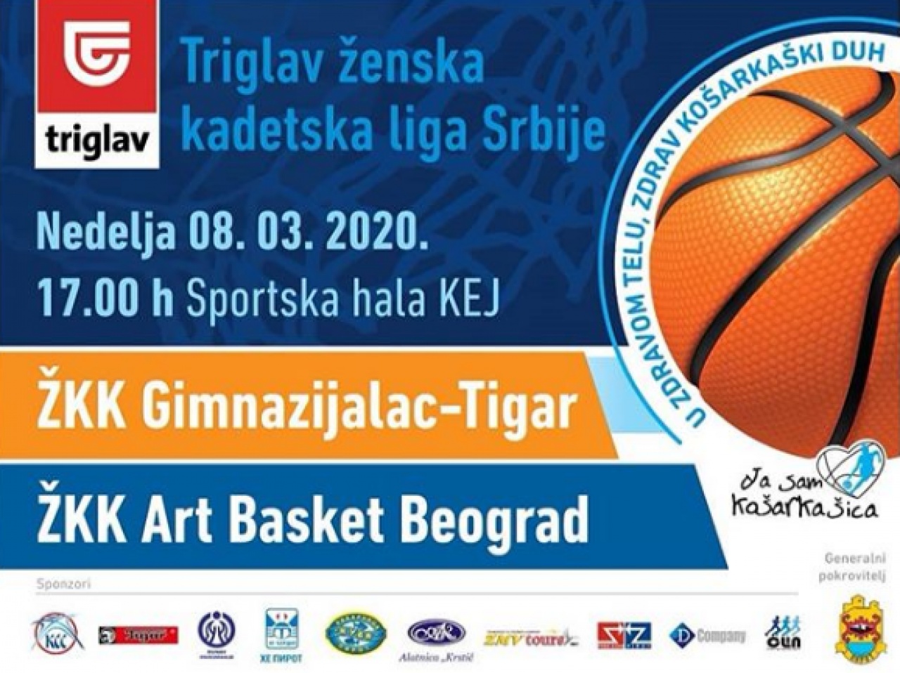 Kadetkinje "Gimnazijalac-Tigra“ u 16. kolu Triglav ŽKLS dočekuju ekipu Art basket iz Beograda. Utakmica se u Hali Kej igra u nedelju 08.03.2020. godine sa početkom u 17 časova.