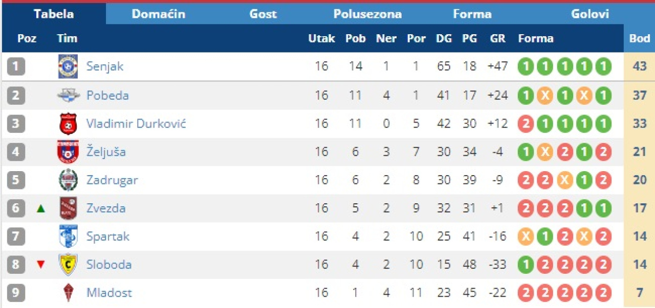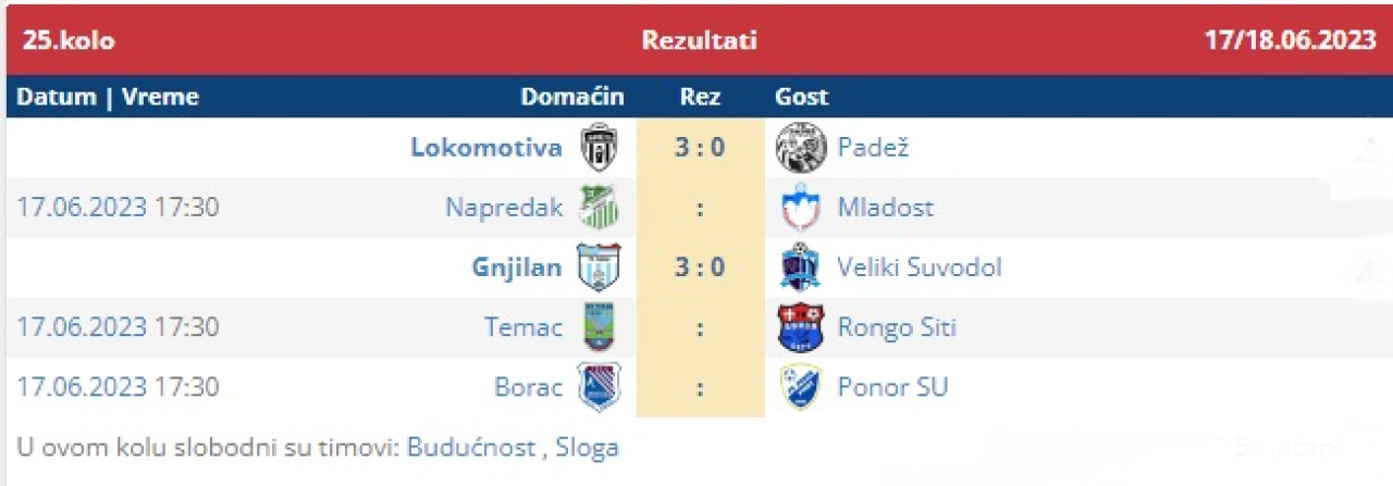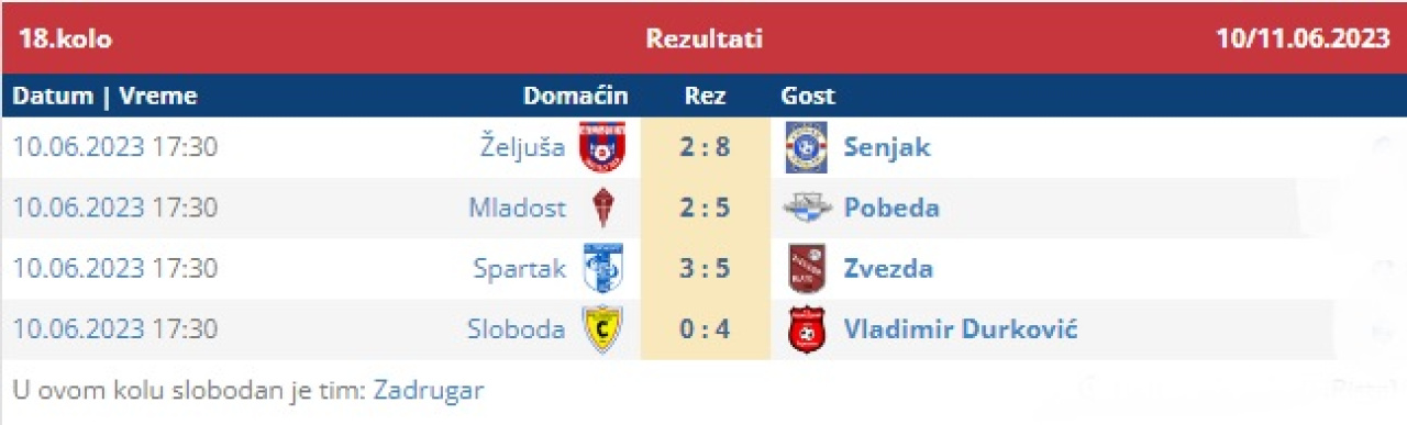 Strelci: Mladenović (18), Ivanov (30) za Mladost; Stanojević( 45), Nikolić (45+2), Đorđević (55), Živković (75), Žunić autogol(80) za Pobedu