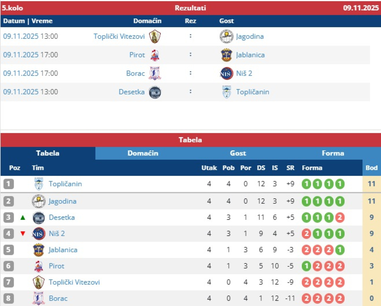 Druga liga Istok, 5. kolo (M)