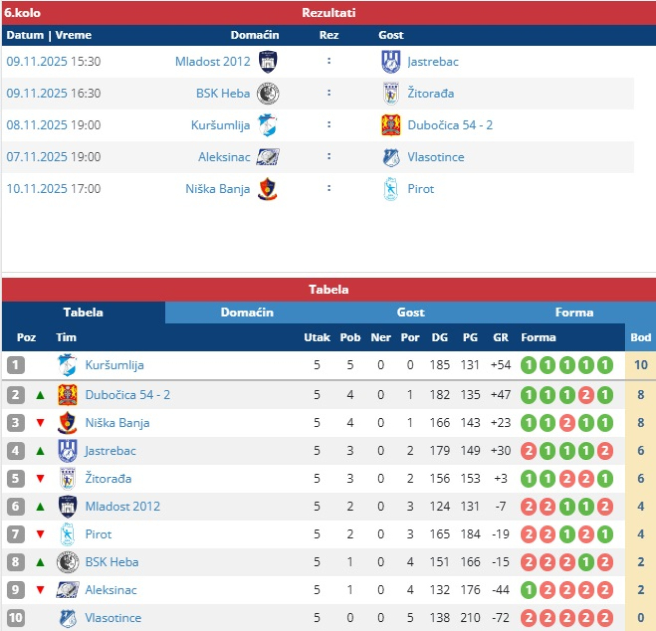 Prva liga istok Grupa B, 5. kolo (M)