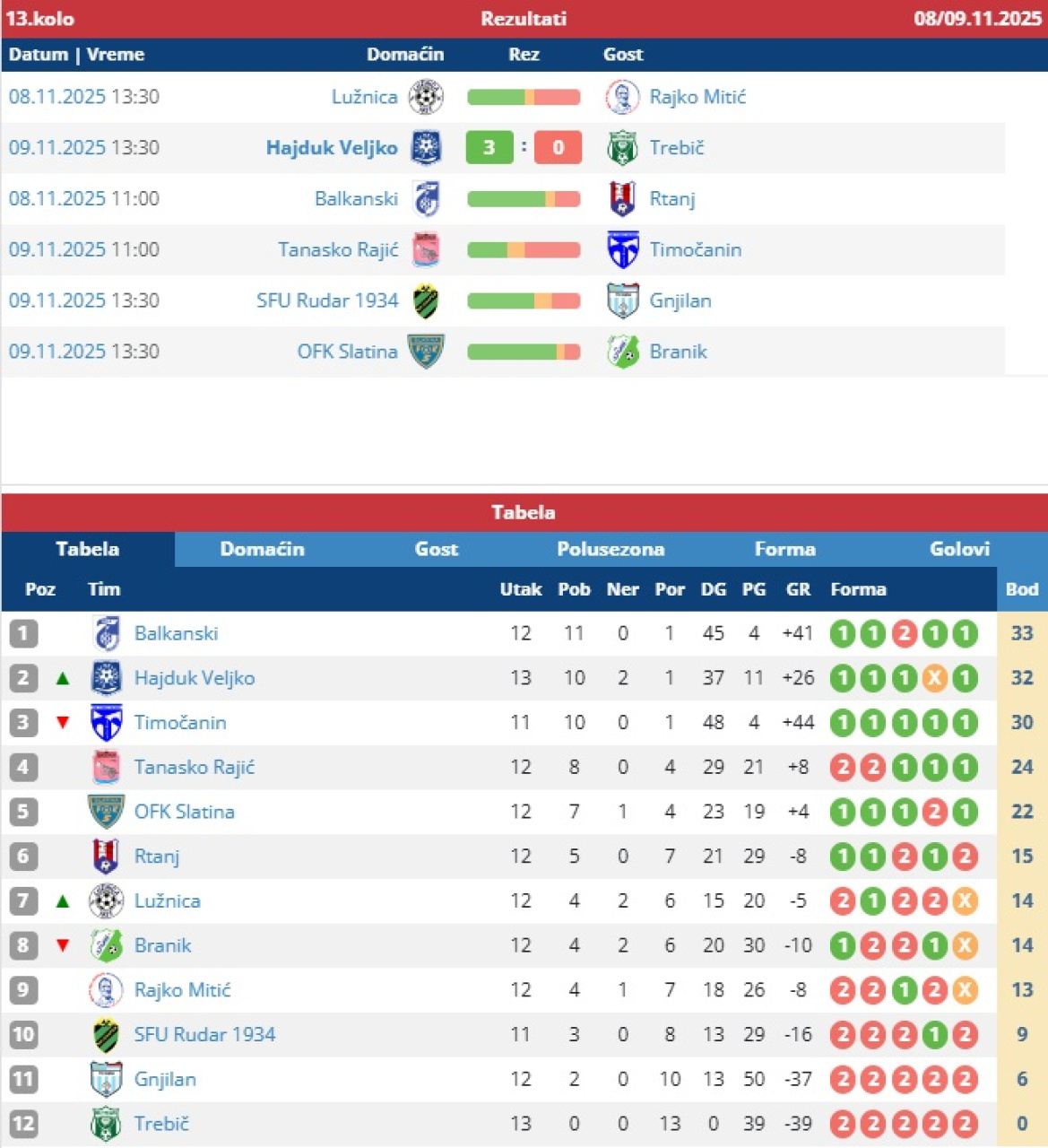 Zona Istok, 13. kolo
