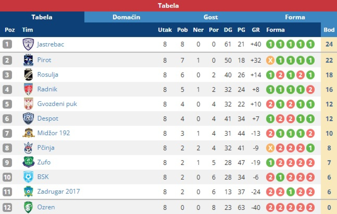 18. apr 2026. 13:36 Srpska liga Istok, 22. koloPonedeljak, 20. april, 16:30Paraćin: Jedinstvo - RadničkiNa zahtev domaćina da se utakmica pomeri za ponedeljak, Stručni štab Radničkog, kao pravi sportski ... -