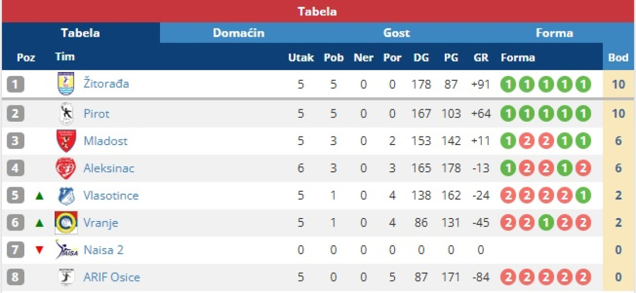 18. apr 2026. 06:12 Prva liga Istok, Grupa B, 13. koloŽRK Pirot - ŽRK Vranje 35:22 (18:10)ŽRK Pirot: Kostić, Rančić 1, Potić 5, Čampa, Filipović 1, Ćirić, Panić 3, Petković 3, P. Dimitrijević, Ristić Nikolić 1, ...