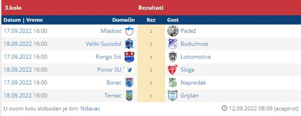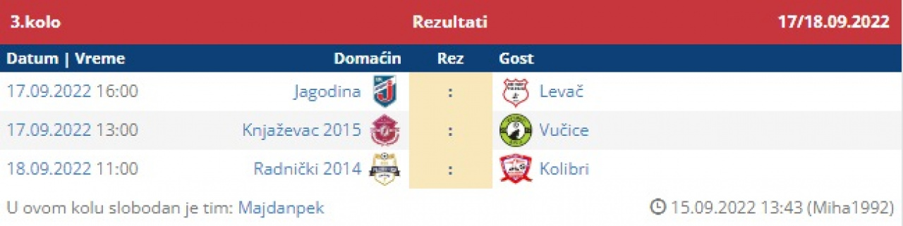 18. apr 2026. 13:36 Srpska liga Istok, 22. koloPonedeljak, 20. april, 16:30Paraćin: Jedinstvo - RadničkiNa zahtev domaćina da se utakmica pomeri za ponedeljak, Stručni štab Radničkog, kao pravi sportski ...