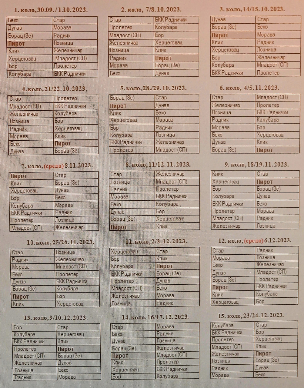 Utakmicu 1. kola protiv Loznice će KK Pirot odigrati u petak, 29.09. od 18 časova u sportskoj hali Kej. Na slici ispod možete videti raspored svih mečeva u prvom delu sezone: