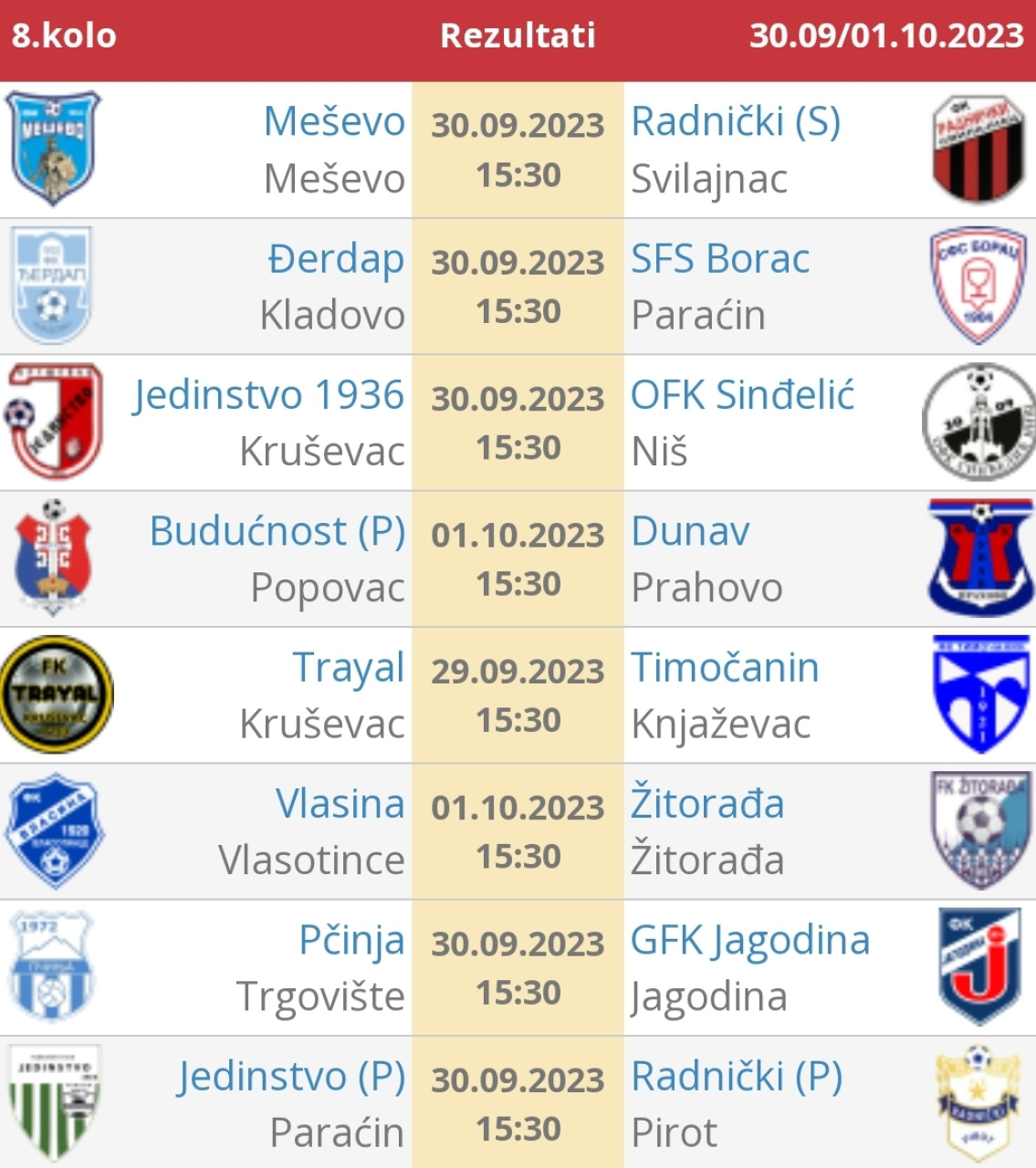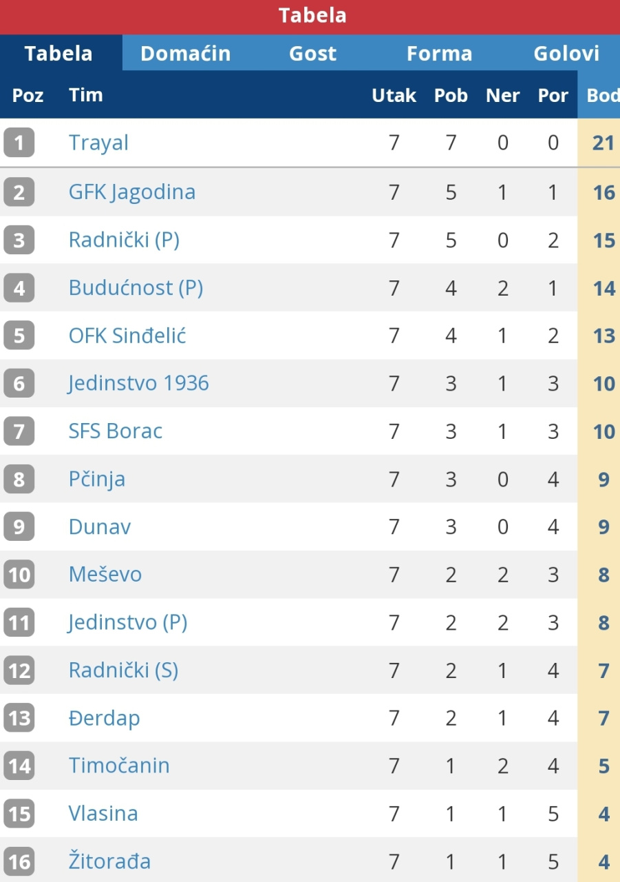 14. mar 2026. 18:39 Srpska liga Istok, 17. koloTrstenik: Trstenik PPT - Radnički 0:0Trstenik: Mitić, Milovanović, Kručičan, P. Milosavljević, Mirković, B. Milosavljević, Čolović (Batočanin), Dimitrijević, Mitrović, ...