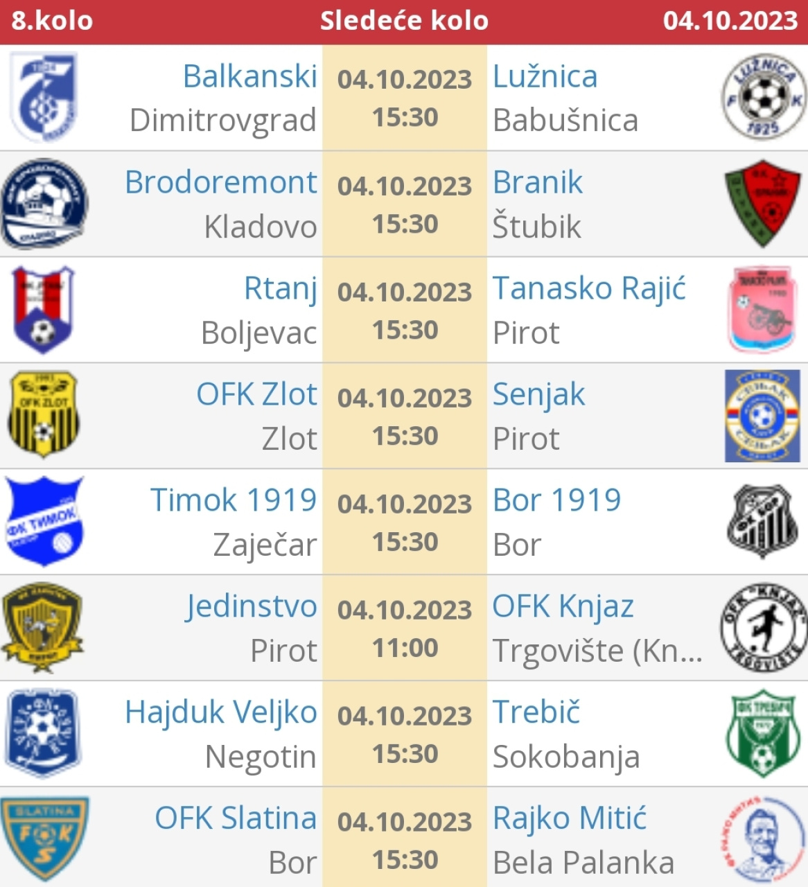Dve utakmice sedmog kola Zone Istok biće odigrane u Pirotu. Tanasko Rajić, posle nerešenog rezultata u prošlom kolu, pokušaće da ponovo započne pobednički niz protiv Brodoremonta. Utakmica je na programu u nedelju u 11 časova. Dan ranije, Senjak će imati težak zadatak. Pirotski tim dočekuje četvrtoplasirani Rtanj od 15:30 časova. Jedinstvo je "uhvatilo zalet" i tražiće treću pobedu zaredom u Sokobanji, protiv ekipe Trebiča. Taj meč počinje u isto vreme kad i Senjak: subota, 15:30.