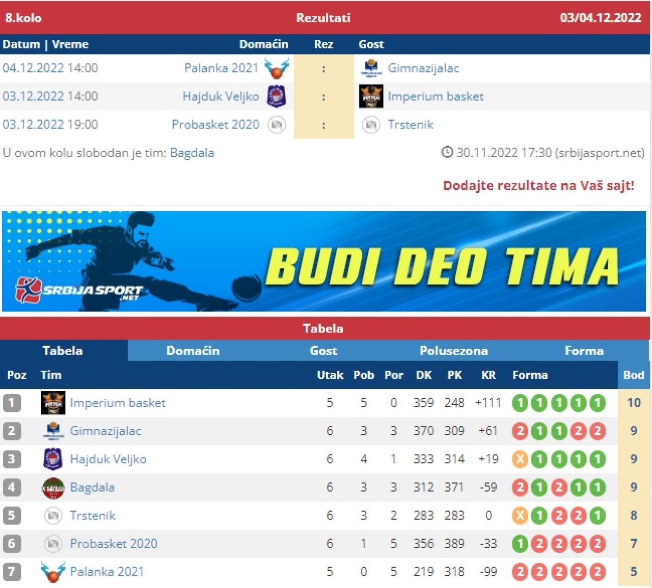 Sportski vikend: Košarkaški derbi u Zemunu. Košarkašice Gimnazijalac Tigra gostuju u Smederevskoj Palanci. Probasket kao domaćin igra sa ekipom Trstenika