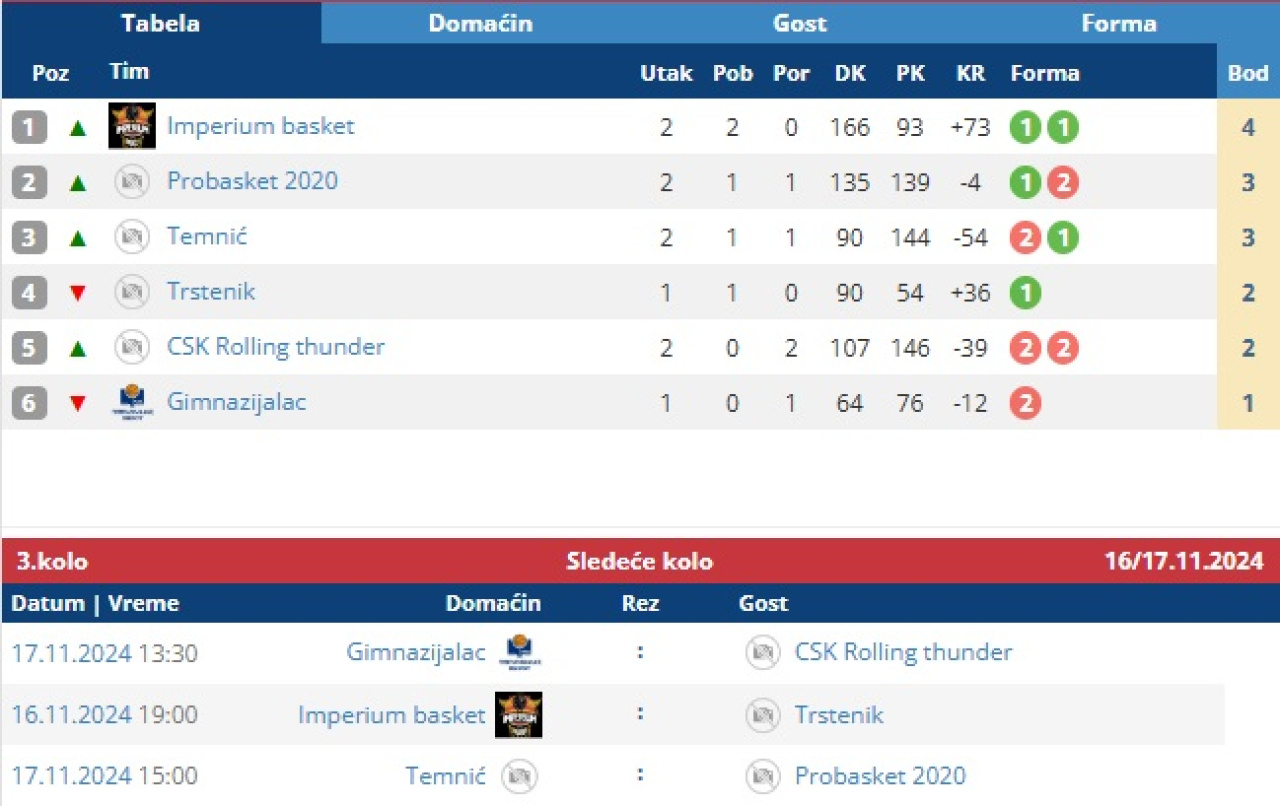 Seniorke Gimnazijalca u trećem kolu Prve ženske regionalne lige jug 2 dočekuju ekipu Rolling thunder iz Smederevske Palanke. Utakmica se igra u nedelju 17.11.2024. od 13.30 časova.