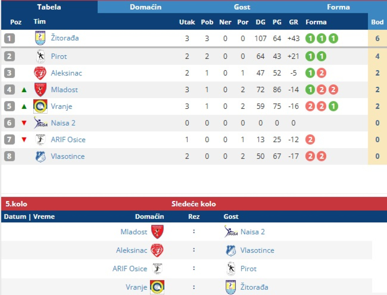 26. okt 2025. 14:00 Prva liga istok, grupa BHala KejPirot: ŽRK Pirot - ŽRK Mladost (Kuršumlija) 36:17 (18:7)ŽRK Pirot: Kostić, Rančić, Potić 11, Čampa 5, Filipović 2, Ćirić 3, Se. Tančić, Si. Tančić 3, ... -
