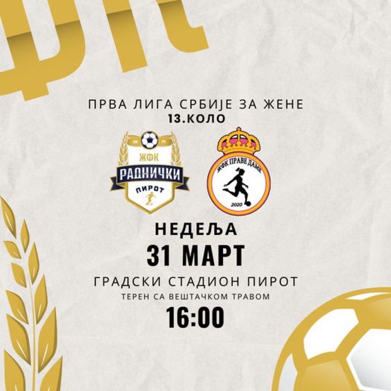 Pirot: ŽFK Radnički 2014 – ŽFK "Prave dame" Stari Banovci