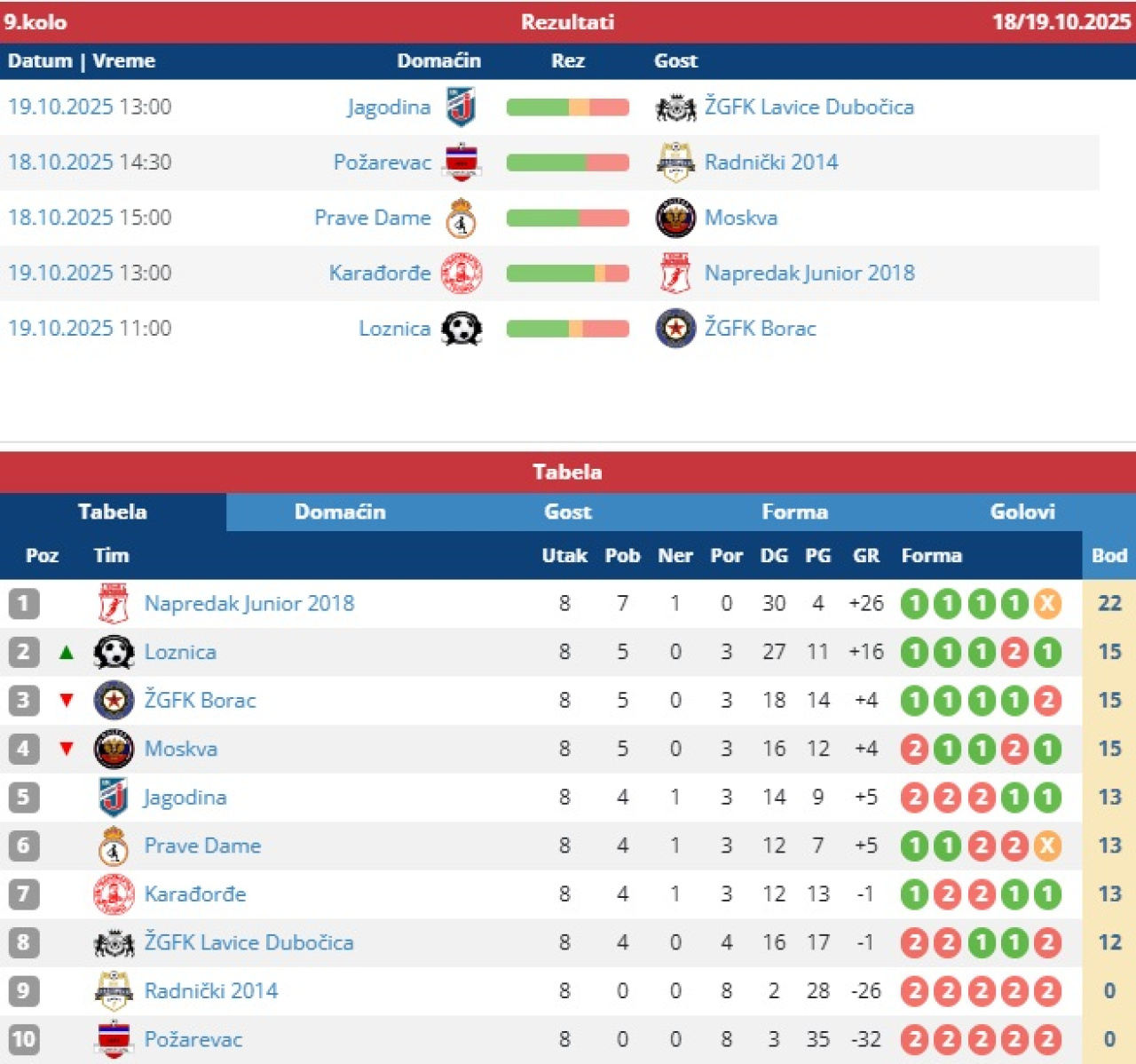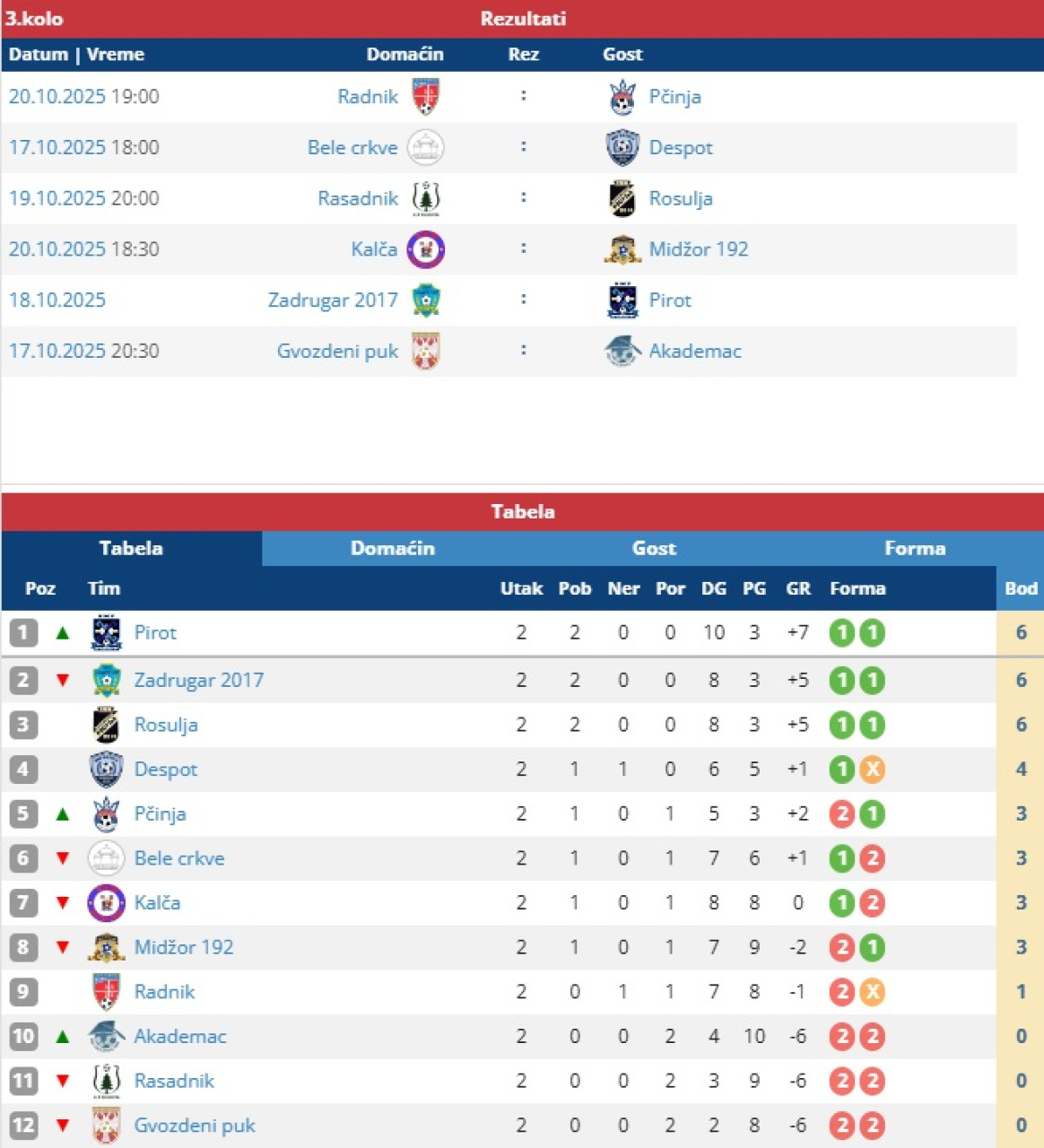 21. okt 2025. 12:23 Prema novim propozicijama, valjda u cilju uštede, igraju se turniri od tri kola u jednom gradu.Radnički je u prvom krugu u Vranju savladao ekipe Sokobanja, Vranje i Bor.Drugi krug mečeva ... -