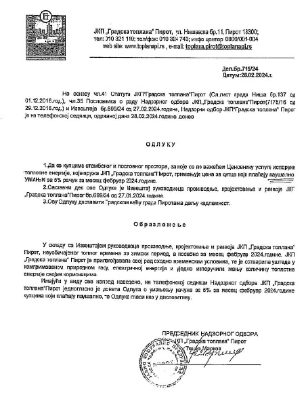 Poštovani, da li možete da potražite objašnjenje od Gradske toplane zašto na februarskim računima nema umanjenja kako su objavili da će biti.