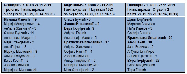 Pionirke Gimnazijalca u 4. kolu gostuju ekipi Student 1 u Nišu. Utakmica se igra u subotu 30.11.2019. od 10:30 časova.