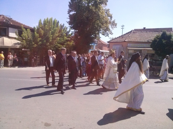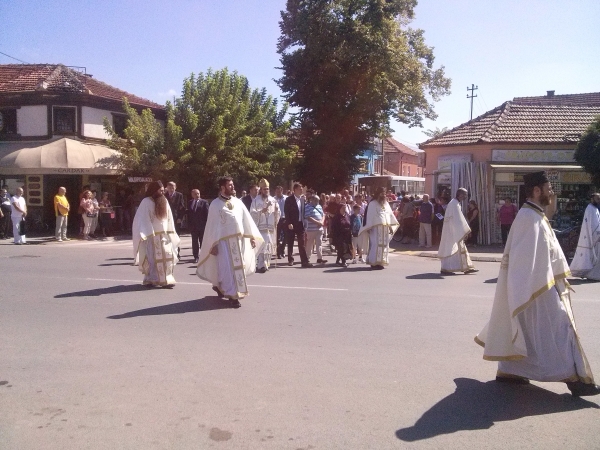 Posle svečanosti u hramu Uspenja Presvete Bogorodice litije, u kojima su bili gosti, sportisti i građani krenule su ka zgrdi Opština Pirot.
