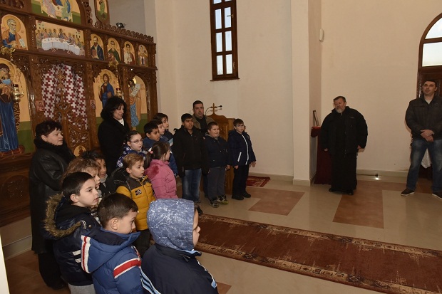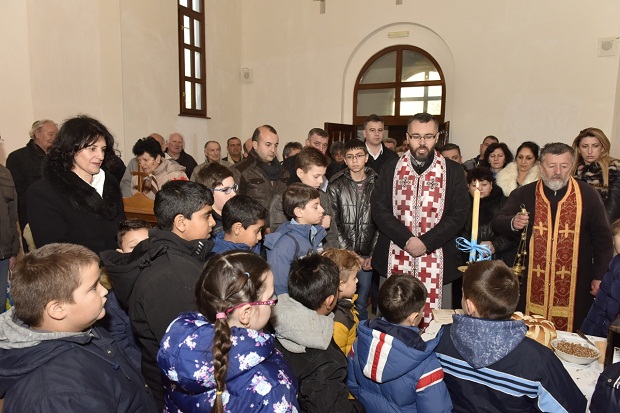 Posle liturgije i sečenja slavskog kolača, učenici su izveli prigodan program i poslali poruke ljubavi, mira i dobrote.