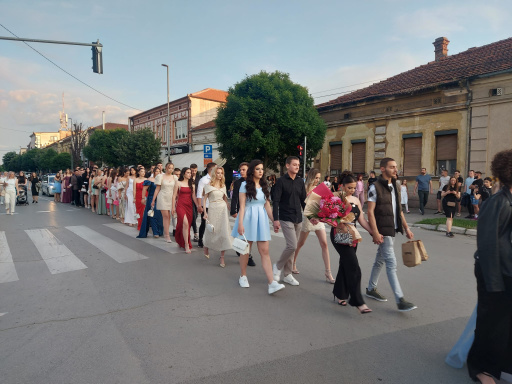 01. jun 2025. 20:43 Maturanti Ekonomske škole Pirot večeras slave završetak srednje škole. Okupljanje je, po tradiciji, bilo na trgu u centru grada.Trg je bio prepun osmeha, poljubaca, cveća... ... -