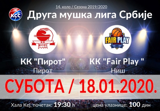 17. jan 2020. 07:15 Druga liga 14.kolo Pirot KK Pirot – Fer plej Niš Subota, 18.januar 19,30 h Nastavlja se prvenstvo. Pirotski tim odigrao je ... -