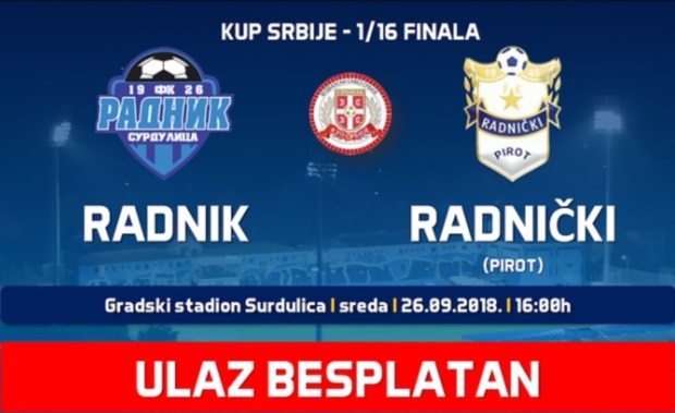 26. sep 2018. 19:30 Kup Srbije 1/16 finala Surdulica : Radnik – Radnički 5:0 (1:0)Radnički: Stamenković,Vlajković(Spasić)Ćirković(Tomović),Marković,Dojkić ( Petrov), Ristov, Tolić, Jovanović, N.Mančic, ... -