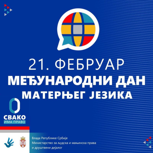 Ministarstvo za ljudska i manjinska prava i društveni dijalog Vlade Republike Srbije saopštilo je povodom 21. februara – Međunarodnog dana maternjeg jezika, da je Vlada Srbije ...