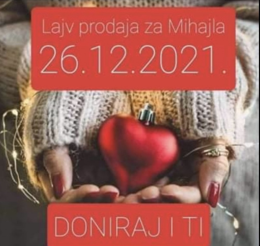 26. dec 2021. 18:45 Počinje još jedna humanitarna akcija za pomoć malom MihajluJavio nam se NikolaPoštovani, potrebna nam je vaša medijska pomoć. Večeras ćemo na profilu Sandra Colic održati live ... -