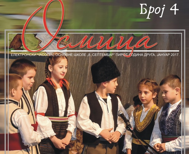 12. jul 2017. 08:30 I peti broj „Osmice” - elektronskog časopisa OŠ „8. septembar” je pred vama. U novoj "Osmici" možete čitati o najvećim uspesima naših učenika i nastavnika u proteklom periodu, o aktuelnostima i ... -