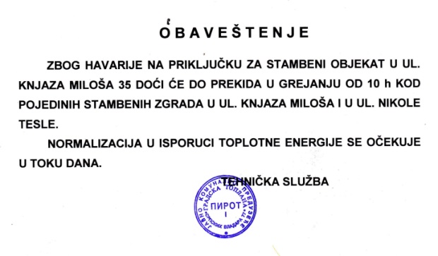 Toplana -obaveštenje