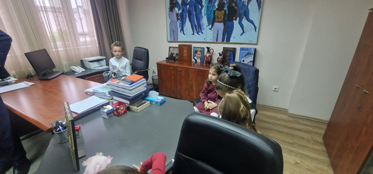 Onda je gradonačelnik Vasić poveo decu u obilazak njegovog kabineta, gde je nastavio razgovor sa njima