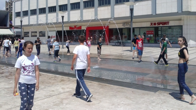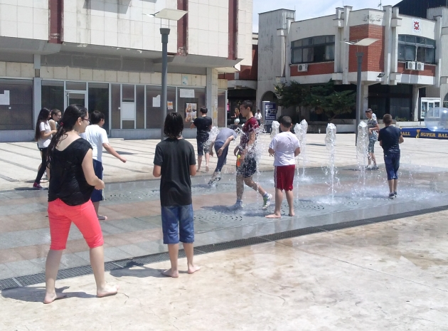 Na kraju školske godine, to je već postalo tradicija, učenici šestog razreda Osnovne škole Vuk Karadzić kupaju se u fontani na "Belom trgu"