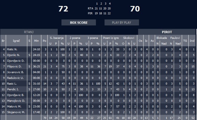 Boljevac: Rtanj – Pirot 72:70 (21:19) (11:18) (20:11) (20:22)