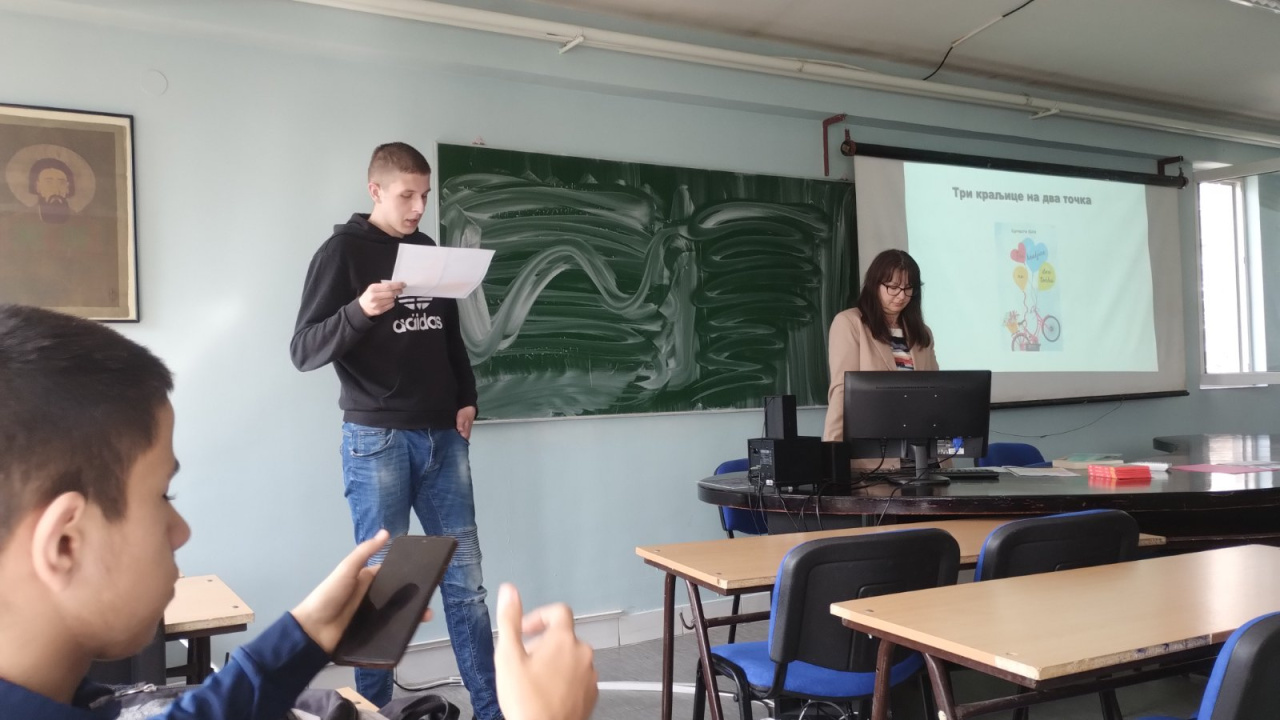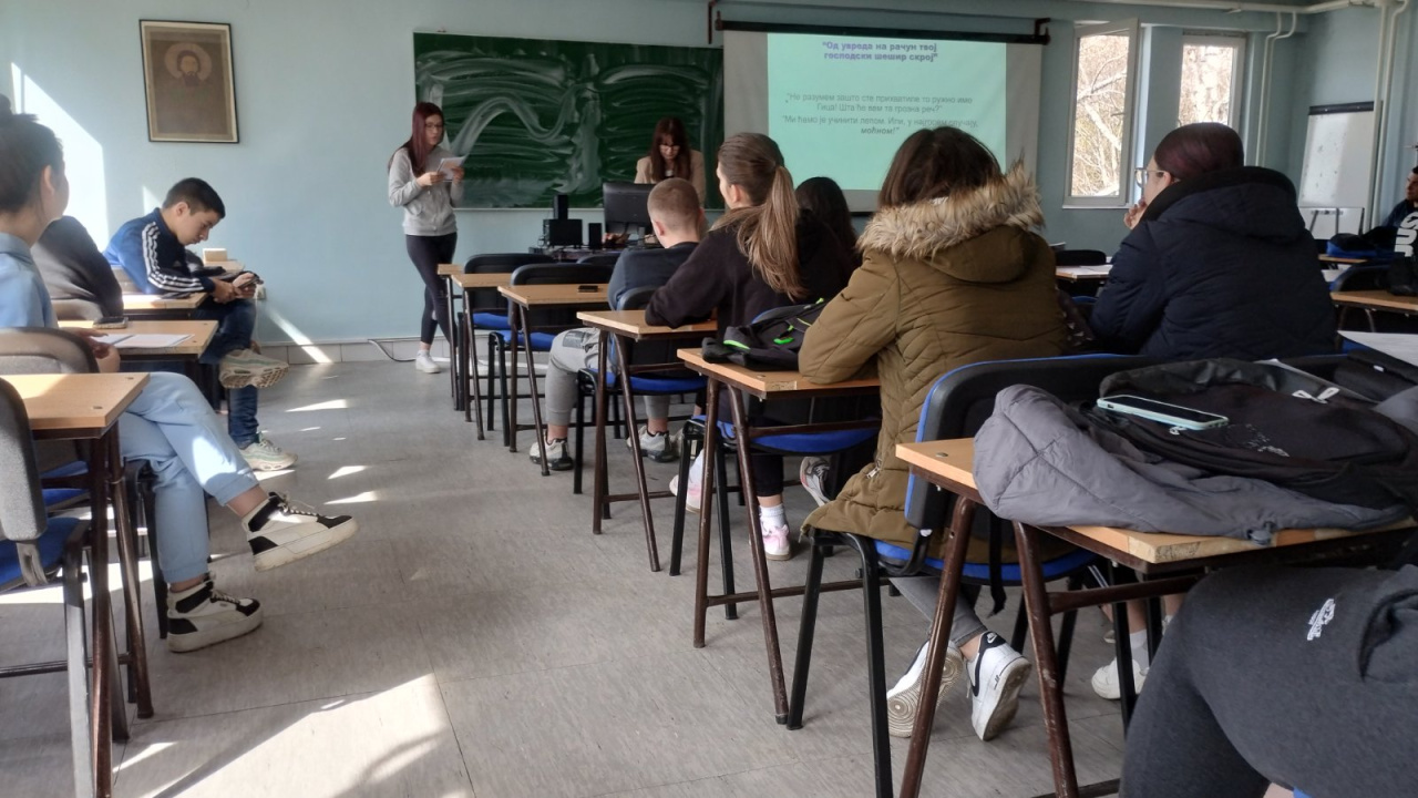 Na svojevrsnoj tribini u organizaciji bibliotekara škole, Maje Manić i Dragane Đorđević, nastavnice sociologije sa pravima građana, učenici su čitali odlomke iz knjige Klementin Bove “Tri kraljice na dva točka” koja se bavi upravo temom vršnjačkog nasilja. Učenici su gledali i kratki film o vršnjačkom nasilju, a nakon toga diskutovali o ovoj izuzetno važnoj temi.