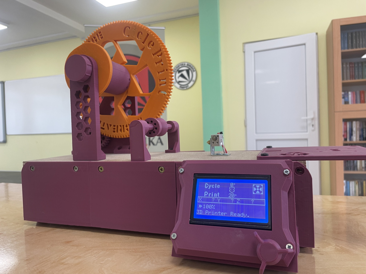 Naša kompanija CyclePrint je razvila uređaj za recikliranje PET materijala i pretvaranje istih u filament za 3D štampanje. Uređaj omogućava da efikasno i ekološki odgovorno recikliramo korišćenu ambalažu i pretvorimo je u visokokvalitetan filament. Osim toga kompanija će se baviti i izradom gotovih proizvoda od recikliranog materijala, poput privezaka i drugih personalizovanih predmeta.