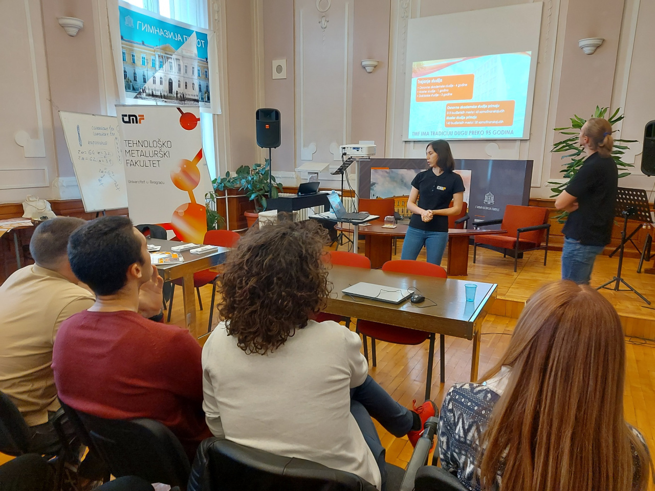 U Svečanoj sali Gimnazije danas je učenicima predstavljen Tehnološko metalurški fakultet u Beogradu. Ovom prilikom je dvoje profesora i nekoliko studenata sa ovog fakulteta govorilo o mogućnostima koje pruža ovaj fakultet.