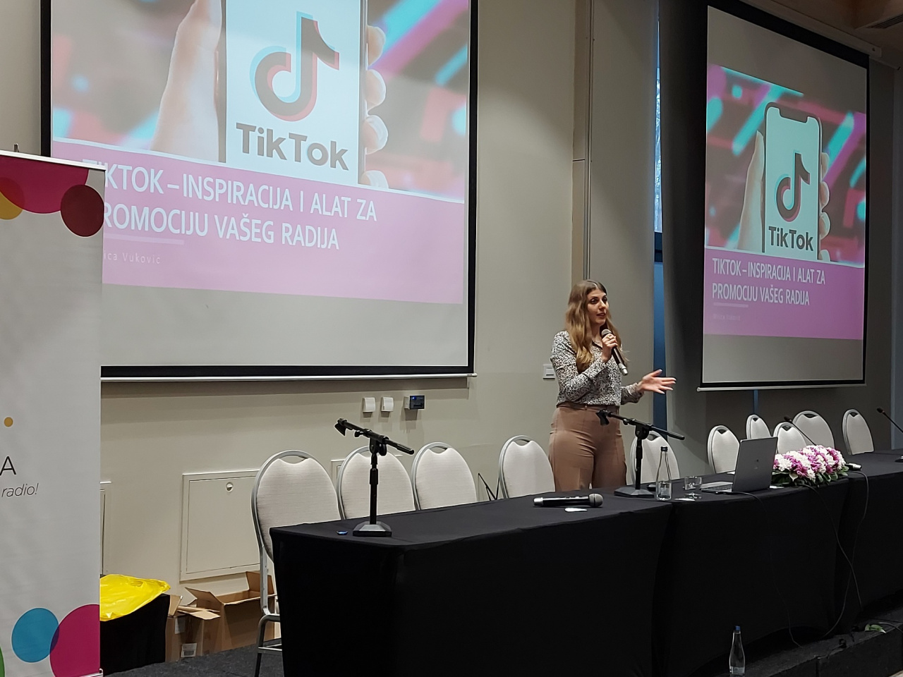 Na kraju dana učesnici su imali priliku da čuju nešto više o Tik Toku. Milica Vuković, kreator digitalnog sadržaja održala je predavanje "Tik Tok - inspiracija i alat za promociju vašeg radija".