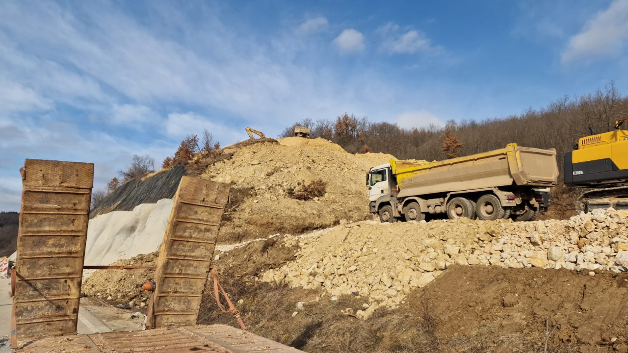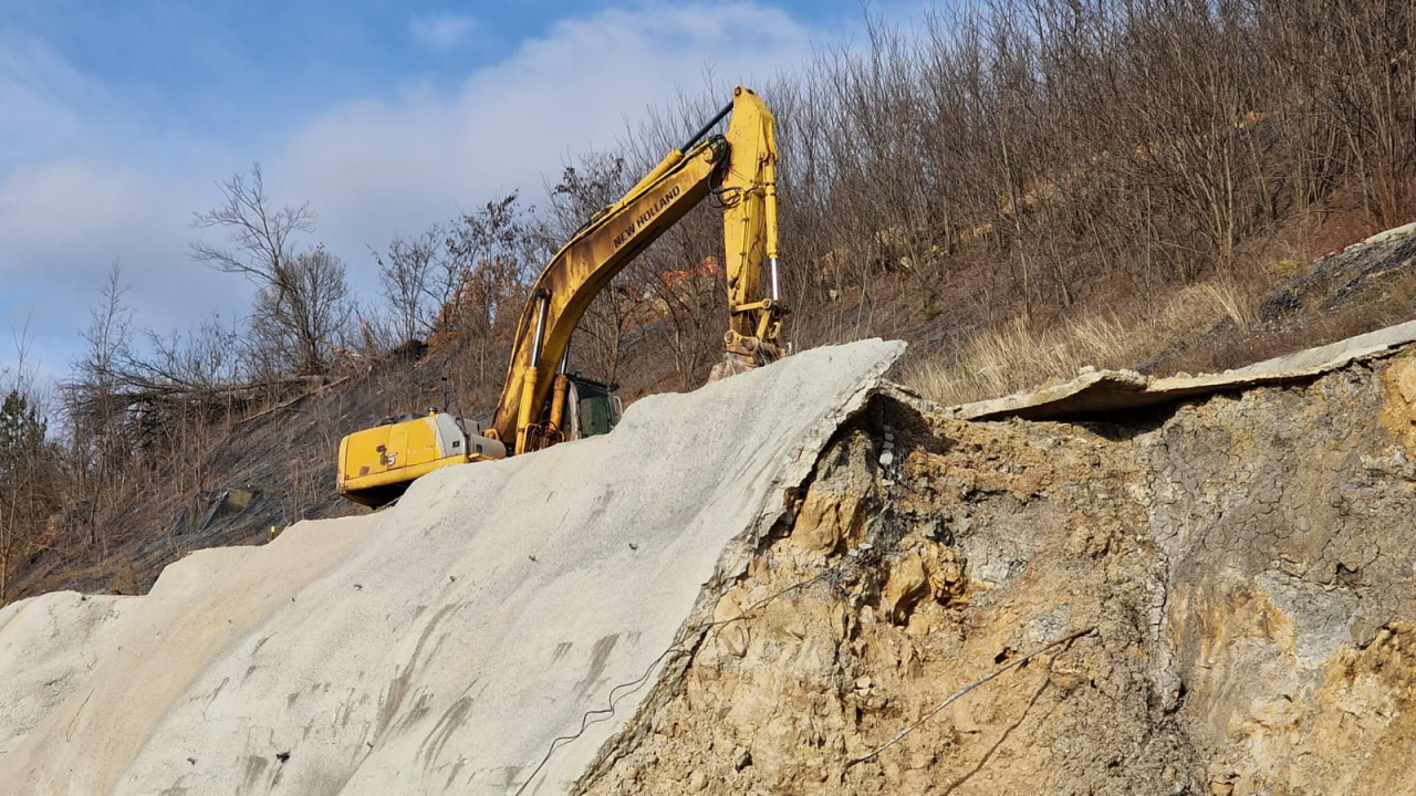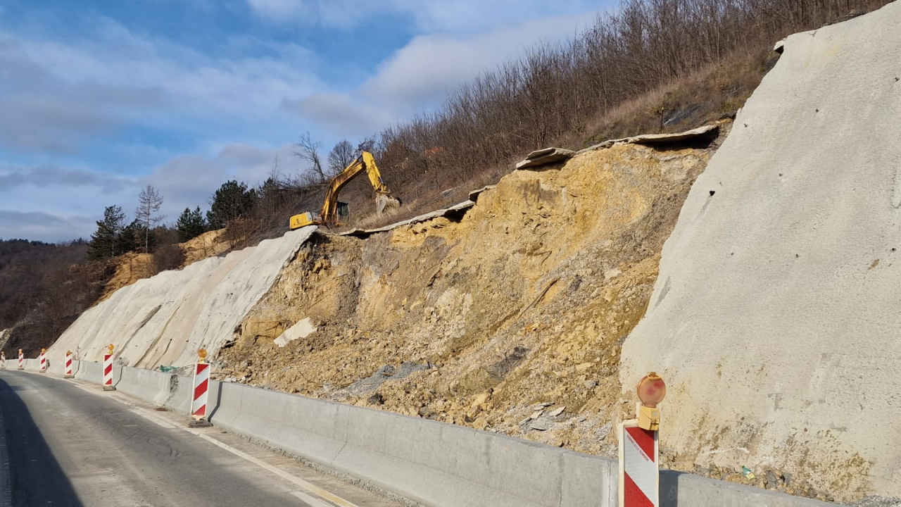 U toku su radovi na iskopu za rasterećenje kosine i odvoz kliznutog materijala, sa stabillizacijom klizišta sa dva reda šipova, čeličnim ankerima i geokompozitnom mrežom.