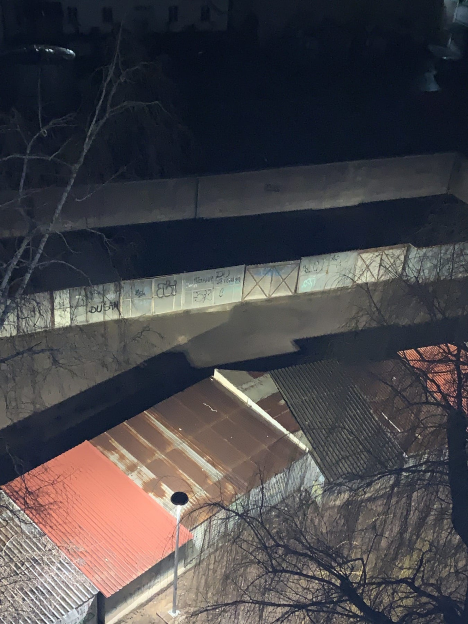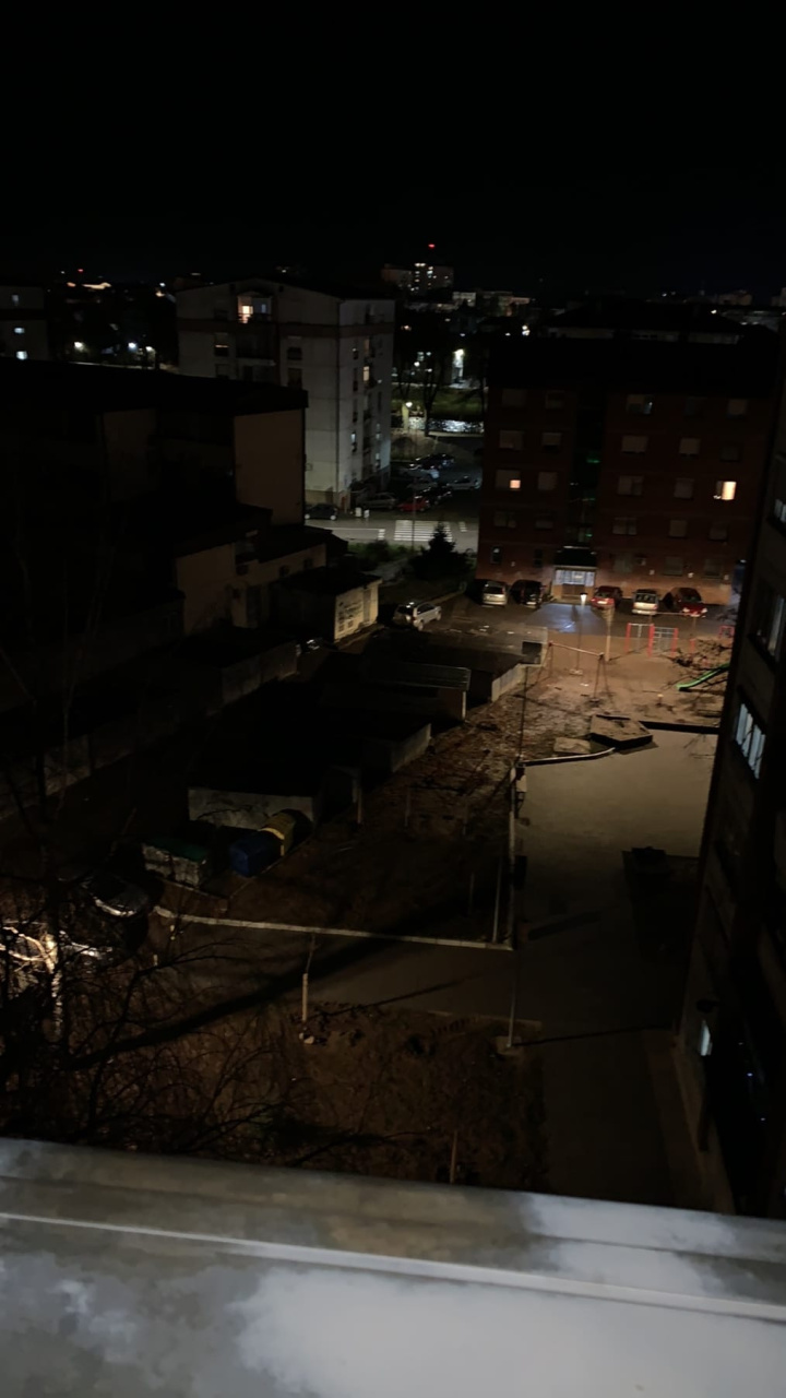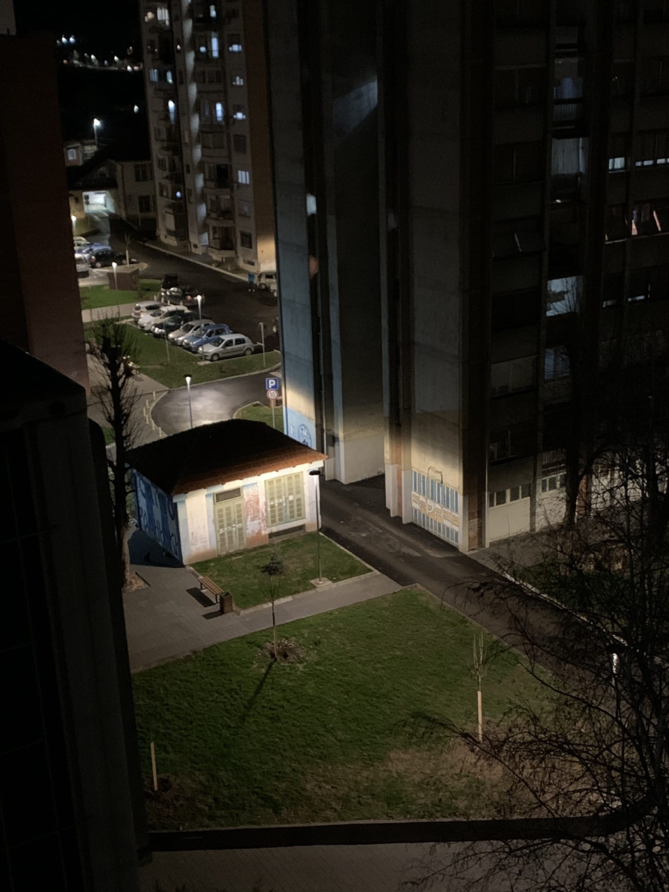 Danas postaviše pola rasvete na parkingu iza ulice Sedmi juli i Svetozara Markovića. Nadam se da će sutra postaviti i ostale koje nisu danas. Evo kako to izgleda sa šestog sprata, rekao je Marko.