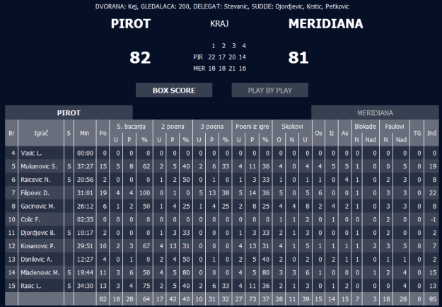 Sl.bacanja : 2 32%8:18 64%, Šut za dva poena : 42:17 40%, Šut za tri pona: 31:10
